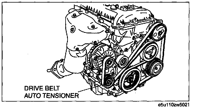 2. Rotate the drive belt auto tensioner in the direction shown in the figure and remove the drive belt.