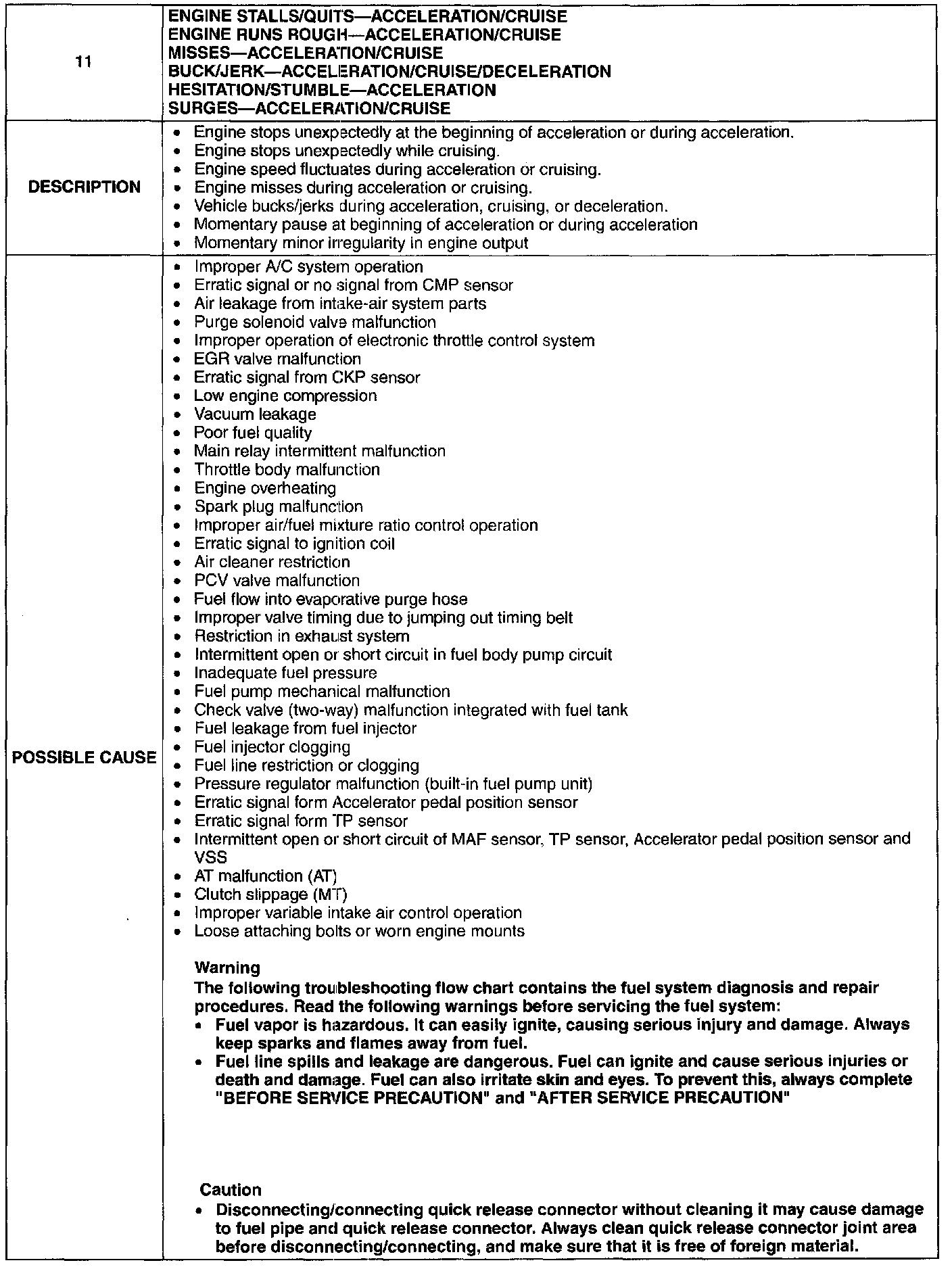 No. 11 Engine Stalls/Quits, Engine Runs Rough, Misses, Buck/Jerk, Hesitation/Stumble, Surges