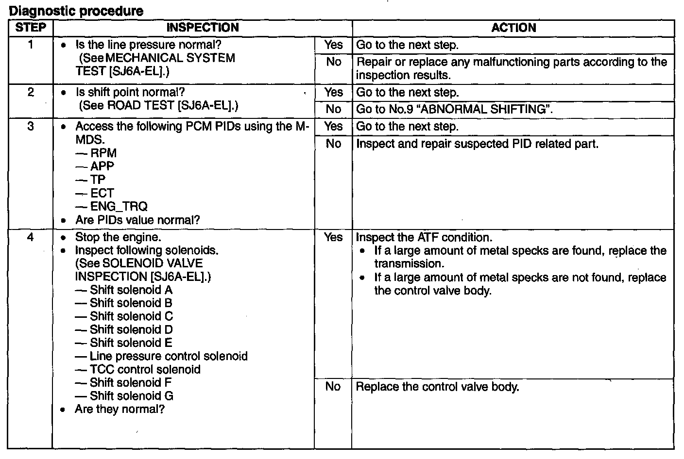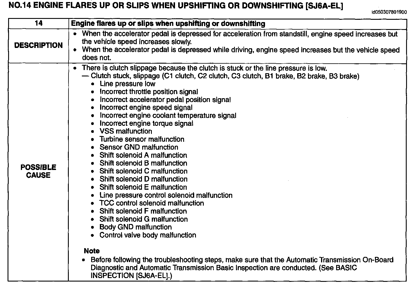 NO.14 ENGINE FLARES UP OR SLIPS WHEN UPSHIFTING OR DOWNSHIFTING [SJ6A-EL]