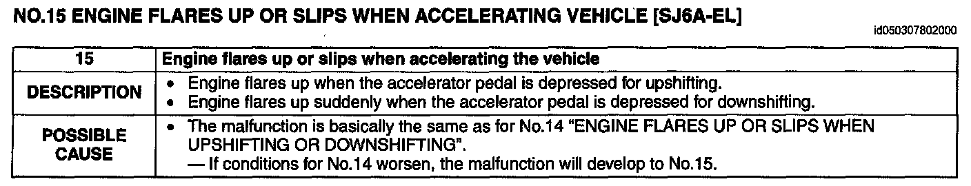 NO.15 ENGINE FLARES UP OR SLIPS WHEN ACCELERATING VEHICLE [SJ6A-EL]