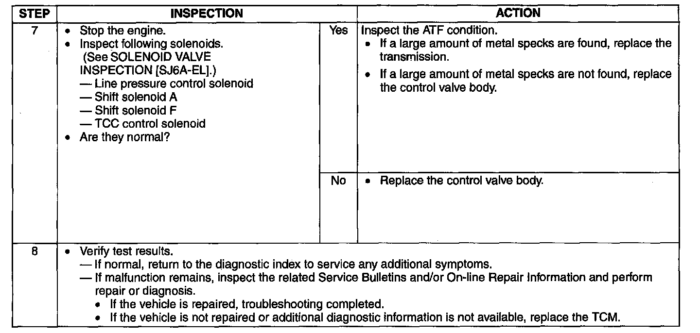 ^ If the ATF temperature is not between 50 - 120°C (122 - 248°F), initial learning cannot be performed. Before learning, inspect for variable shift shock.