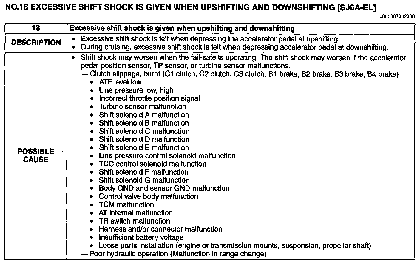 NO.18 EXCESSIVE SHIFT SHOCK IS GIVEN WHEN UPSHIFTING AND DOWNSHIFTING [SJ6A-EL]