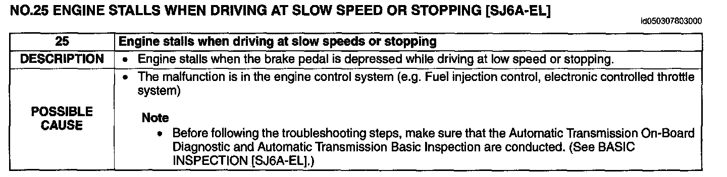 NO.25 ENGINE STALLS WHEN DRIVING AT SLOW SPEED OR STOPPING [SJ6A-EL]