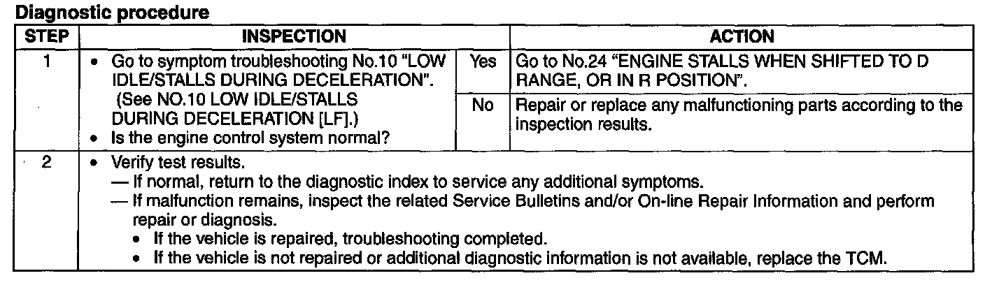 No.25 Engine Stalls When Driving At Slow Speed or Stopping