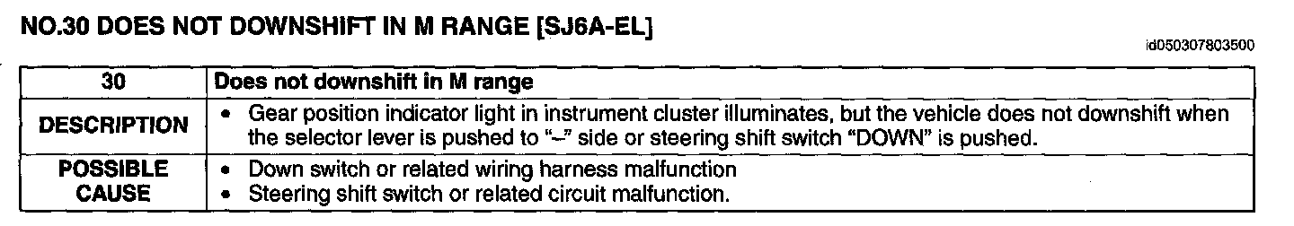 NO.30 DOES NOT DOWNSHIFT IN M RANGE [SJ6A-EL]