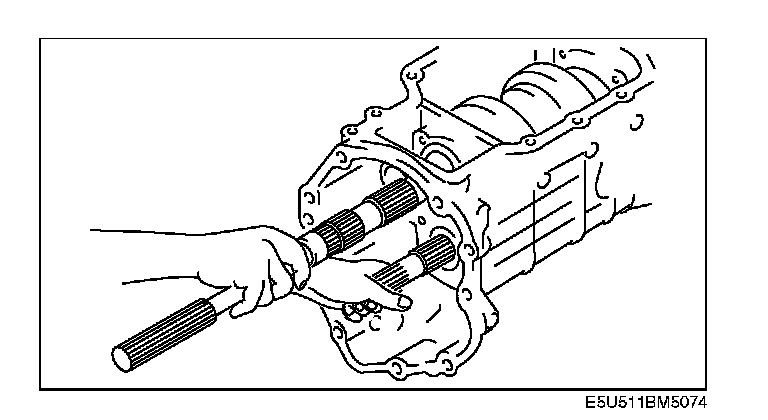 Grasping the mainshaft and countershaft, move them forward and back to remove the bearing races.