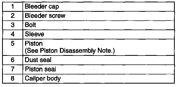 CALIPER (FRONT) DISASSEMBLY/ASSEMBLY1. Disassemble in the order indicated in the table.