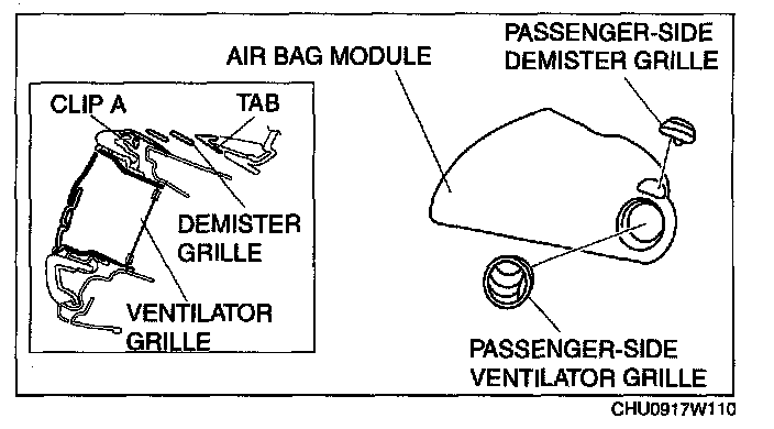 4. Pull the passenger-side demister grille upward and detach clip A.