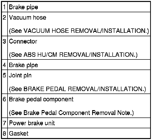 Brake Pedal Component Removal Note