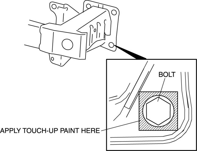 2. After installing bolt A, touch-up the exposed base material area of the front bumper reinforcement with touch-up paint.