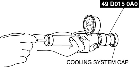 4. Hold the cooling system cap downward and apply pressure gradually. Verify that the pressure is held stable for 10 s.