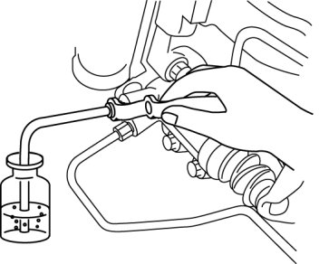 2. Remove the bleeder cap from the bleeder plug and attach a vinyl hose to the bleeder plug.