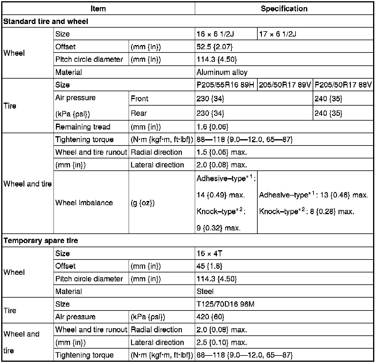 One balance weight: 60 g {2.12 oz} max. If the total weight exceeds 100 g {3.53 oz} on one side, rebalance after moving the tire around on the rim. Do not use three or more balance weights.