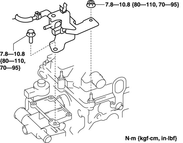 - Do not disconnect the purge solenoid valve and evaporative hose except when replacing the purge solenoid valve because it may cause evaporative gas leakage.