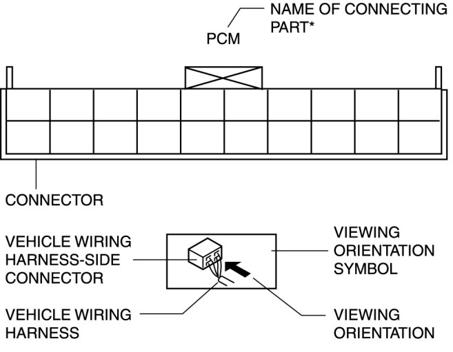 The viewing orientation for vehicle wiring harness-side connectors is from the wiring harness side.