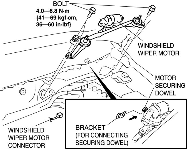 WINDSHIELD WIPER MOTOR REMOVAL/INSTALLATION