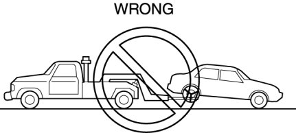 - Do not tow the vehicle pointed backward with driving wheels on the ground. This may cause internal damage to the transaxle.