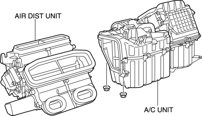 6. Remove the A/C unit and air dist unit. Air Dist Unit Removal/Installation