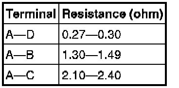 Verify that the resistance between the resistor terminals is as shown in the table.