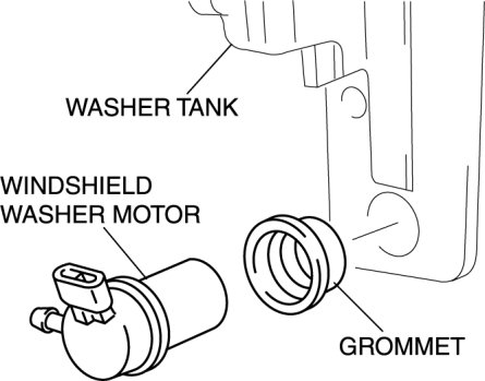 3. Remove the windshield washer motor, then remove the grommet.