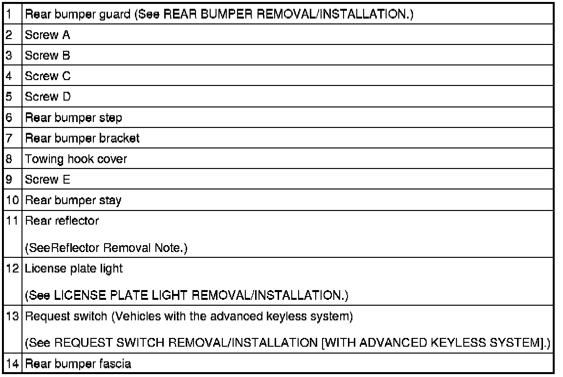 1. Disassemble in the order indicated in the table.