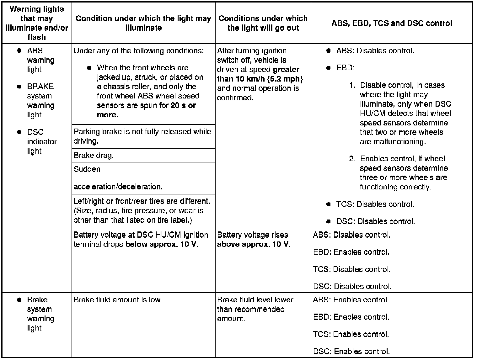 - The control module has an on-board diagnostic function. With this function, the ABS warning light and/or BRAKE system warning light and/or DSC indicator light and/or DSC OFF light will illuminate when there is a problem in the electrical system.