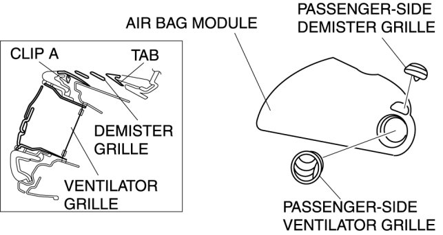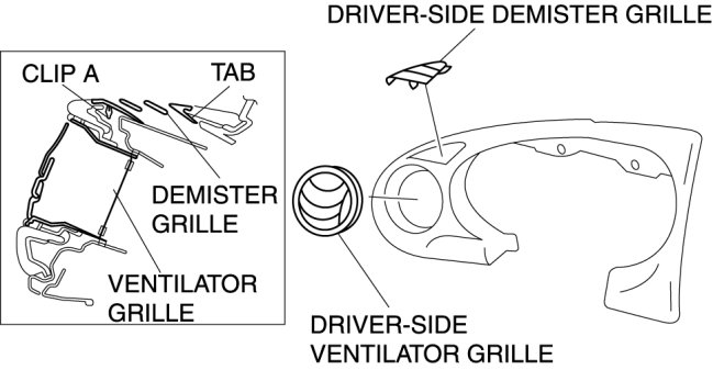 4. Pull the passenger-side demister grille upward and detach clip A.