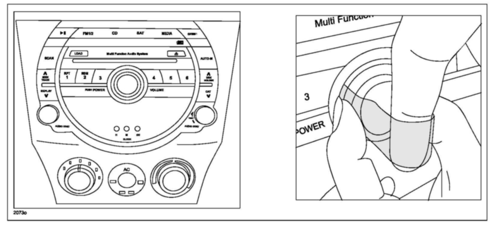 RX-8 Audio Unit Software Programming Tool Connection Procedure1. Remove the center knob by pulling out using a firm grip, or by using tape as shown.