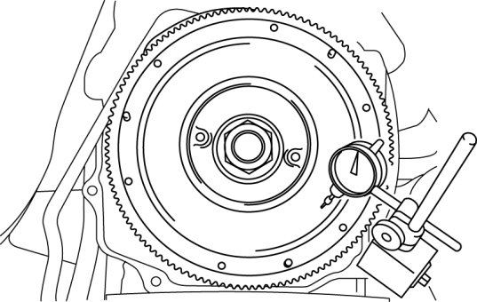 5. Measure the runout of the surface that contacts the clutch disc using a dial gauge.