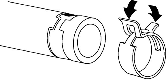- If reusing the hose, install the new hose clamp exactly on the mark left by the previous hose clamp. Then apply force to the hose clamp in the direction of the arrow in order to fit the clamp in place.