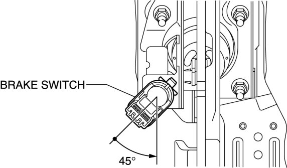 - The clearance between the brake switch and the brake pedal is automatically adjusted to the correct amount when the brake switch is inserted into the installation hole on the brake pedal and rotated to fix in place. If the brake switch is not properly installed, the clearance may be incorrect, causing a brake light malfunction. Therefore, always verify that the brake pedal is properly installed and fully released before installing the brake switch to the pedal.