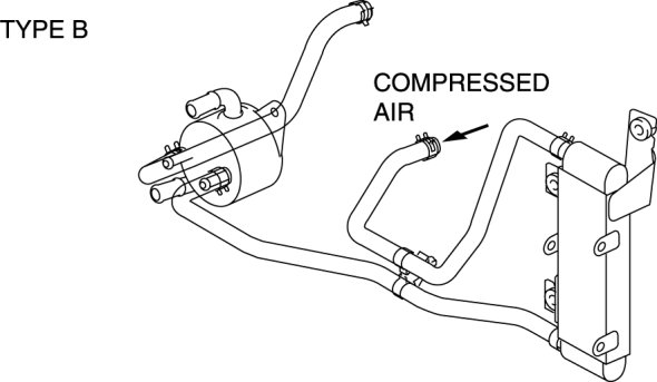 4. Add new ATF from the oil cooler hose outlet and blow 491-882 kPa {5-9 kgf/cm2, 72-127 psi} of compressed air to flush. (Repeat 2 or 3 times)