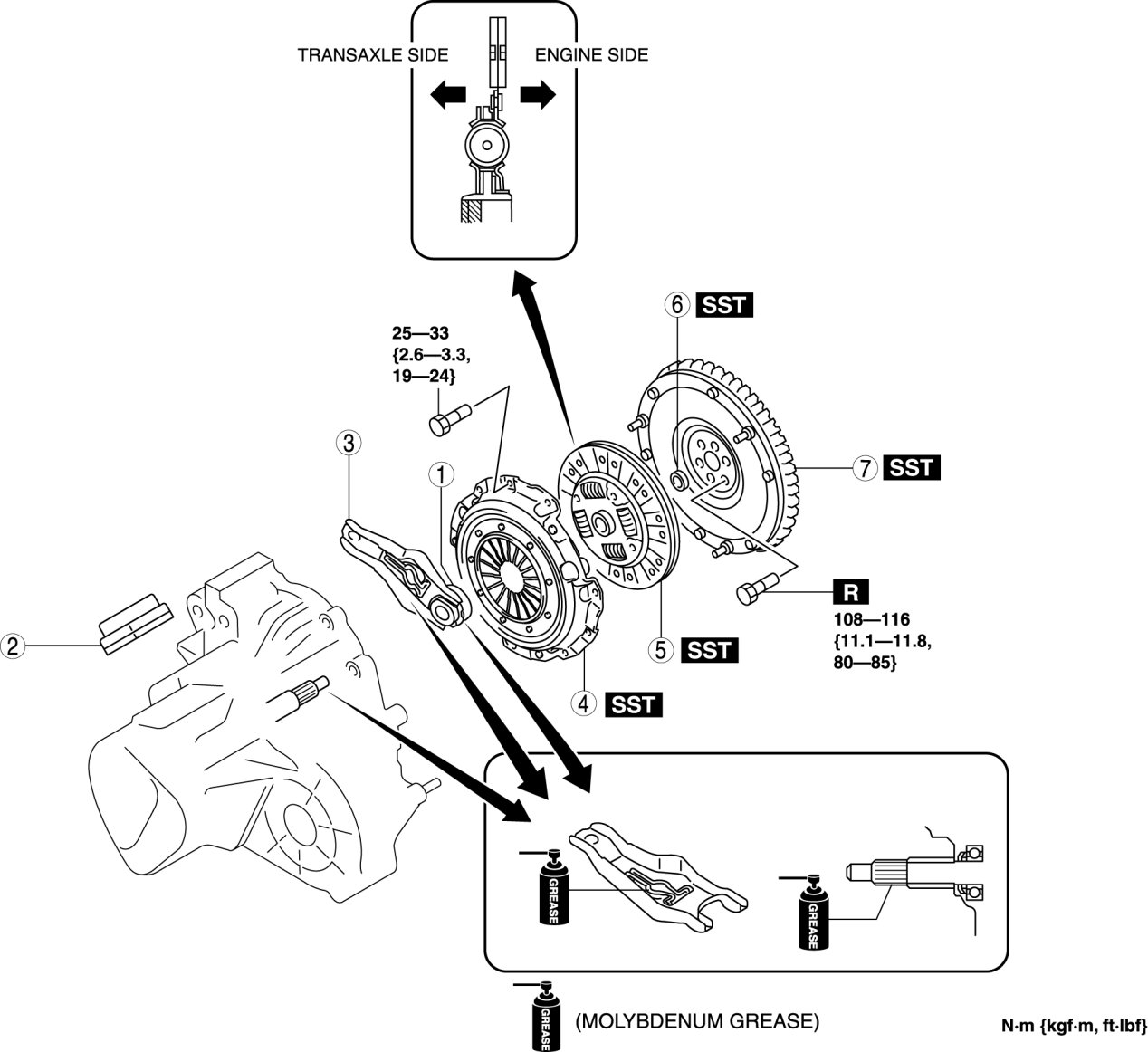 - 25-33 Nm {2.6-3.3 kgf-m, 19-24 ft-lbf}