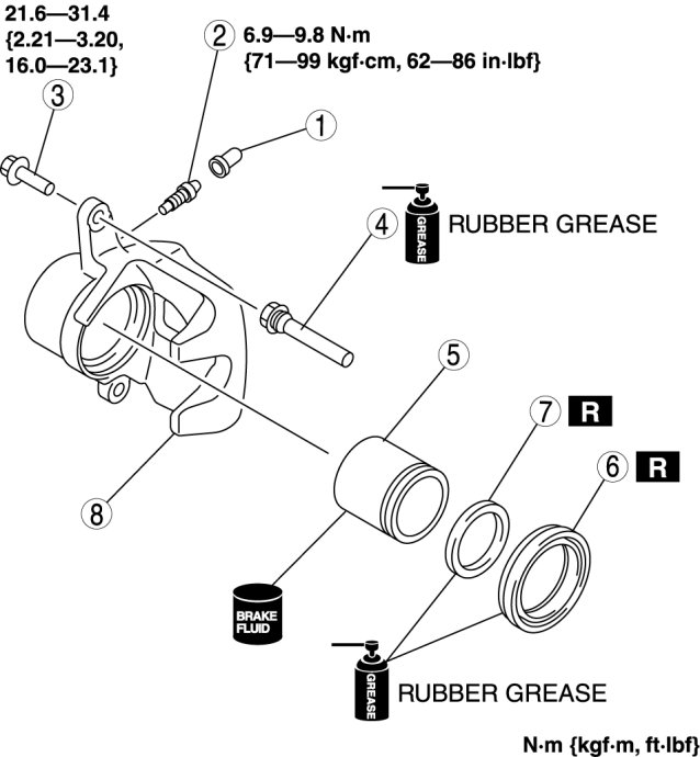 CALIPER (FRONT) DISASSEMBLY/ASSEMBLY