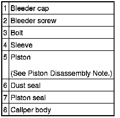 1. Insert a piece of wood in the caliper as shown in the figure, and then blow compressed air through the bleeder screw hole to remove the piston from the caliper body.
