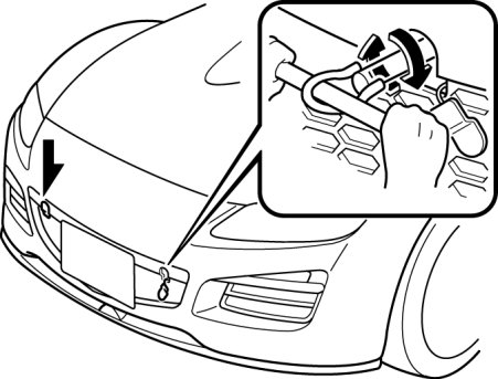 - If the Tie-down eyelet is not securely tightened, it may loosen or disengage from the bumper when tying down the vehicle. Make sure that the Tie-down eyelet is securely tightened to the bumper.