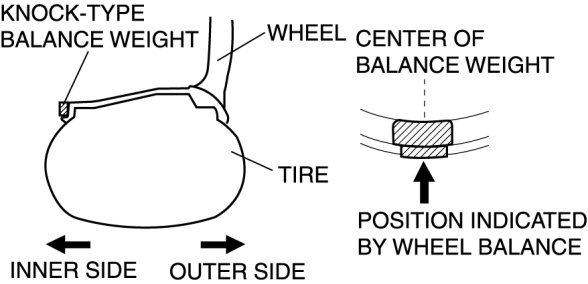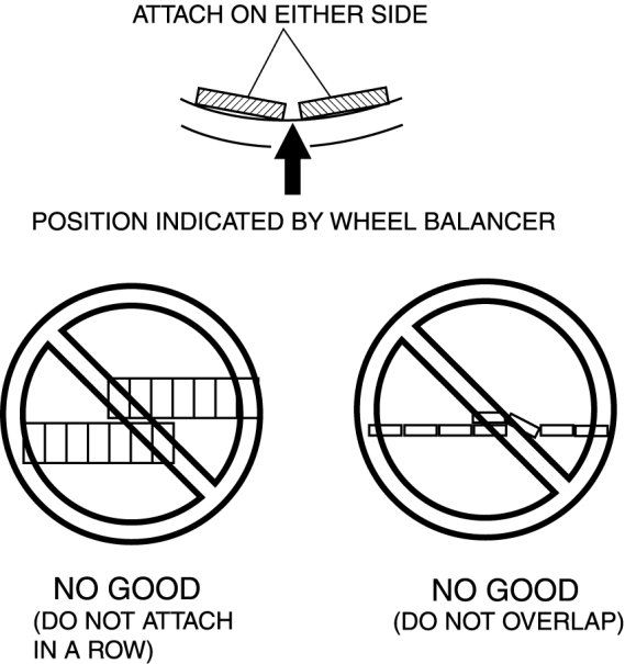 6. If attaching tow balance weights, position them so that each is on either side of the position indicated by the wheel balancer.