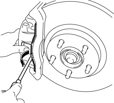 1. Move the retaining clip in the direction shown by the arrow using a flathead screwdriver and remove it from the caliper.