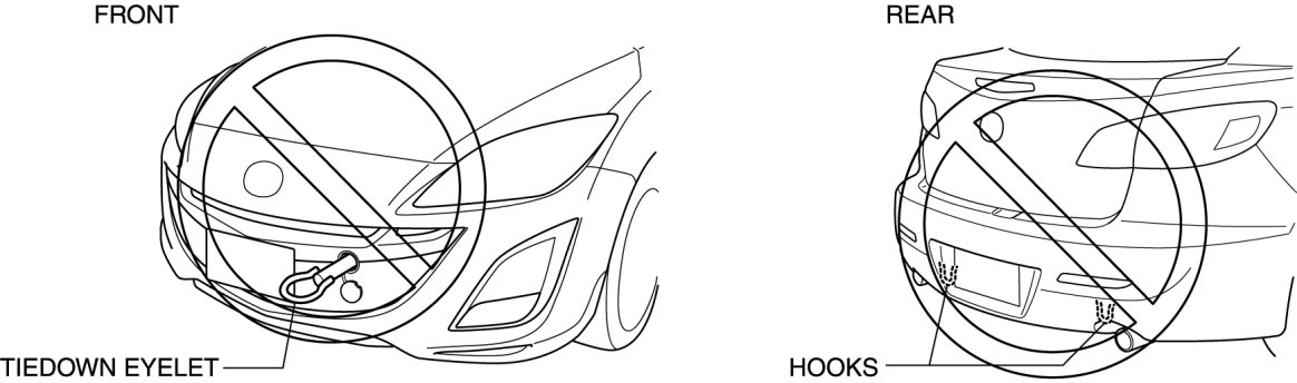 - To prevent damage to the vehicle, do not use the tie-down eyelet (front) and the left/right tie-down loops (rear) for towing the vehicle using another vehicle.