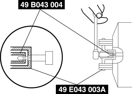 4. If dimension L is not within the standard, remove the SST (49 G043 001) and, while stopping the push rod rotation with the SST (49 E043 003A), adjust the push rod length with the SST (49 B043 004).