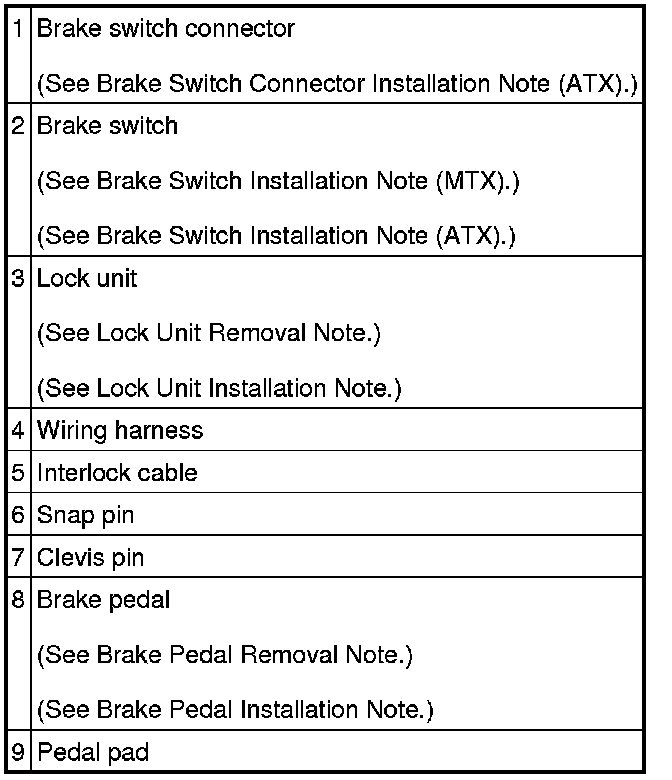 - When replacing the brake pedal component of ATX vehicles, see the Interlock Cable Installation Note to prevent incorrect installation could result. Service and Repair