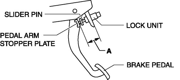 1. Before removing the lock unit, measure length A (between lock unit and pedal arm stopper plate) and note it down for reference in installation.
