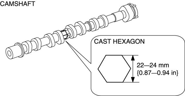 - Width at the cast hexagon of the camshaft is 22-24 mm {0.87-0.94 in}.
