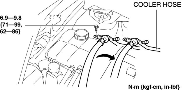 5. Remove the cooler hose bracket bolt and set the cooler hose aside.