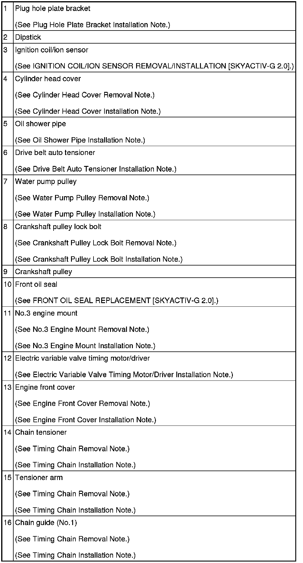 TIMING CHAIN REMOVAL/INSTALLATION [SKYACTIV-G 2.0]