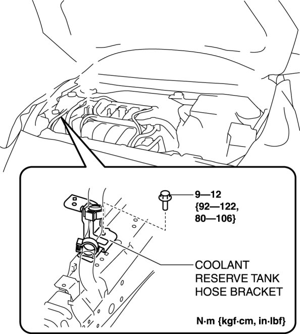 b. Set the coolant reserve tank hose bracket in a place which does not interfere with the servicing.