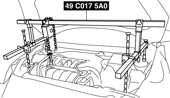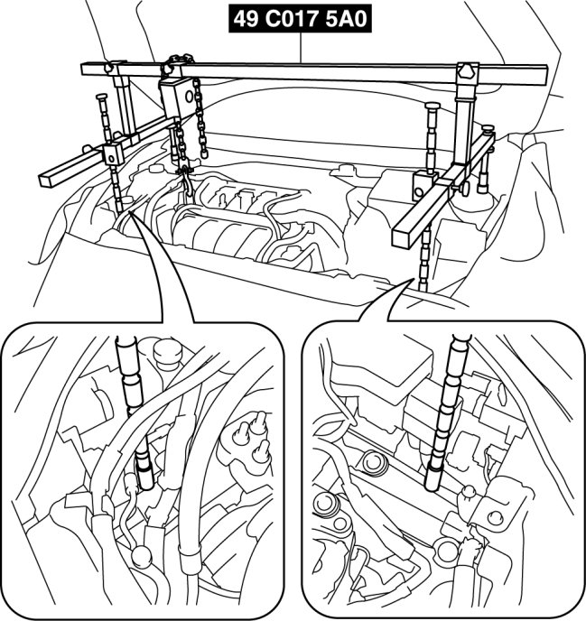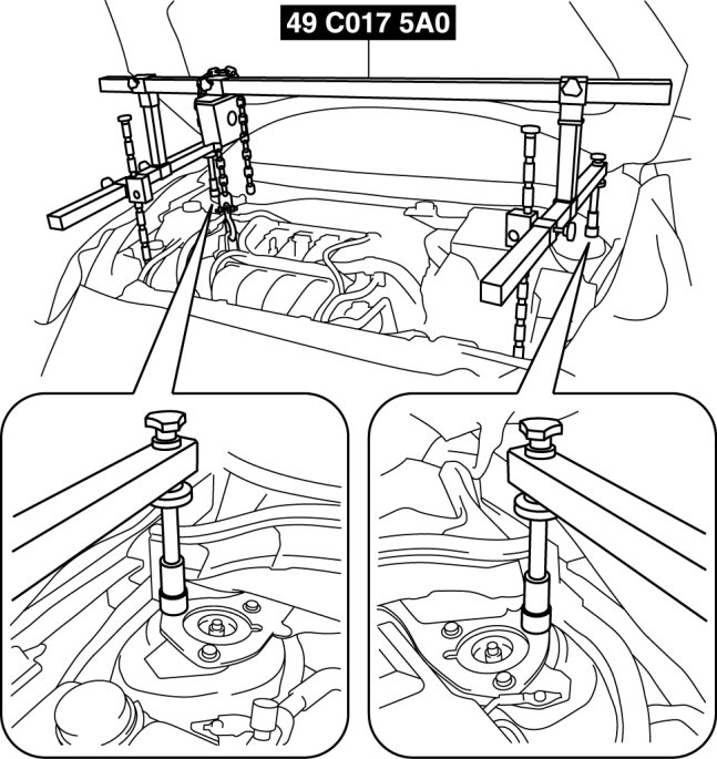 c. As shown in the figure, set the rear shafts of the SST to the left and right shock absorber bolts.