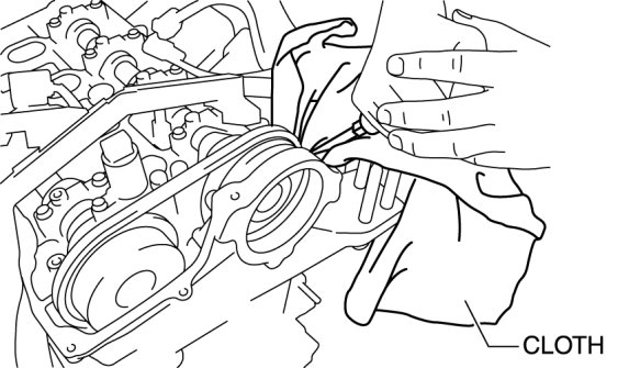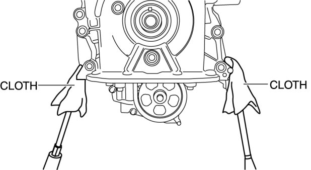 2. Remove oil, dirt, and sealant adhering to the engine front cover, cylinder head, and cylinder block.