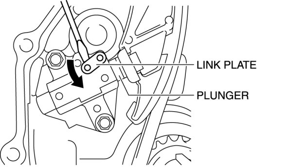 - When moving the exhaust camshaft back and forth, the timing chain pushes the plunger in the chain tensioner making it easier to operate the link plate.