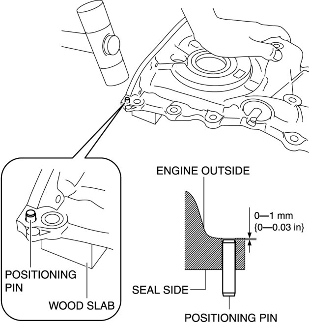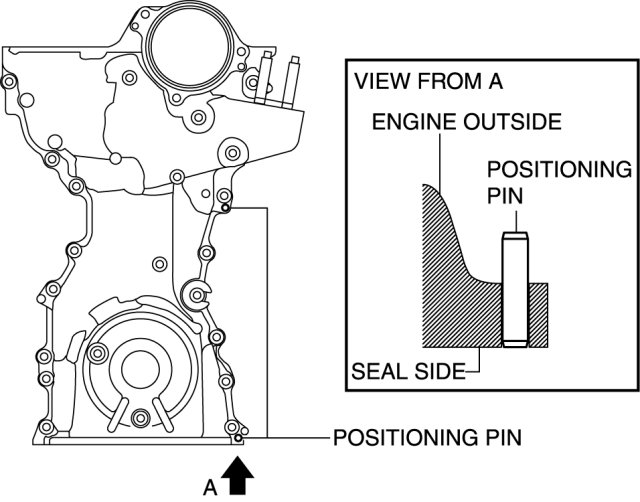 1. If the engine front cover is newly replaced, tap the positioning pins in the two locations to the seal surface side.